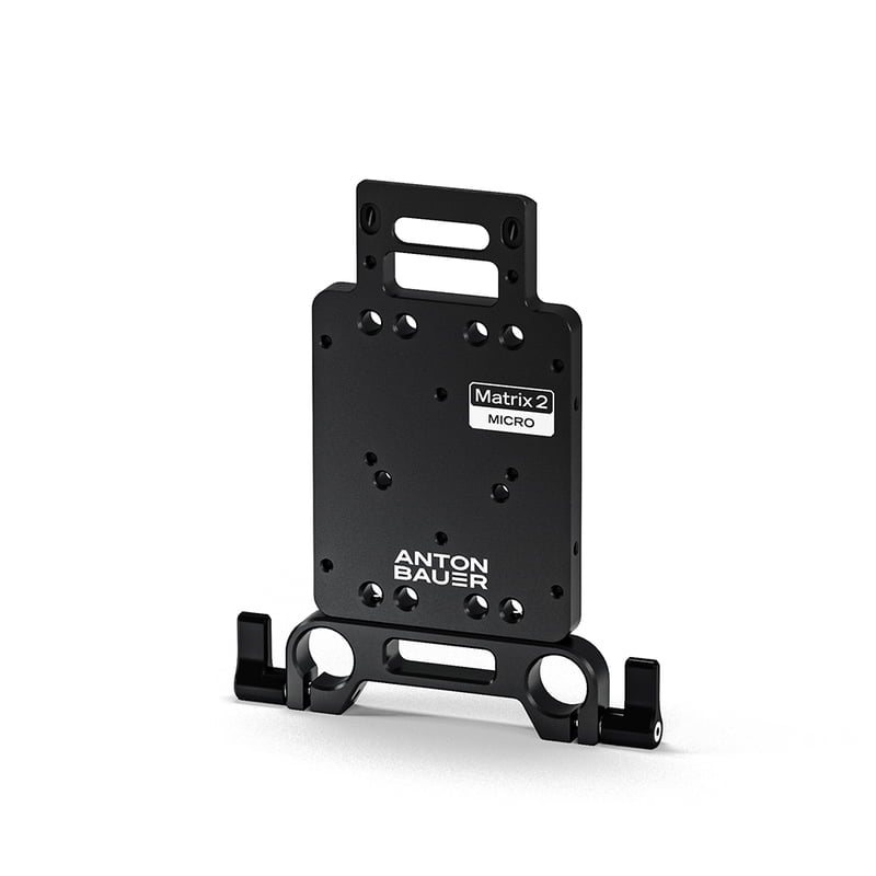 The plate comes pre-drilled for mounting optional Anton Bauer Micro battery plates (Gold or V-mount), and it features fifteen 1/4"-20 and two 3/8"-16 threaded holes.