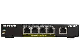 The GS305P 5-Port Gigabit PoE-Compliant Unmanaged Switch from NETGEAR. This switch features five Gigabit Ethernet ports, four of which are PoE-compliant with a total power budget of 55W.