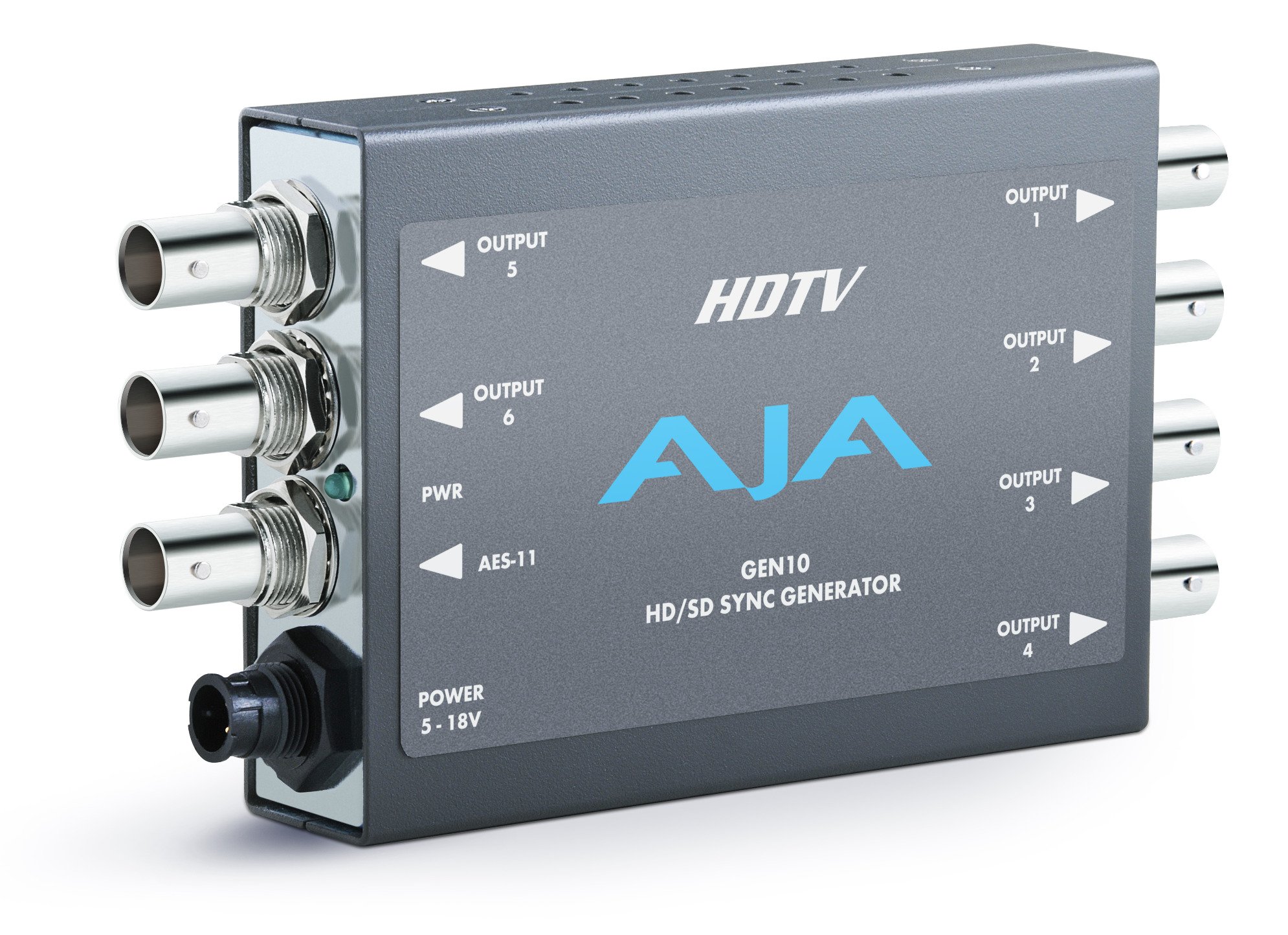 The AJA GEN10 HD/SD/AES Sync Generator with Universal Power Supply is a very cost effective sync generator, providing multi-format tri-level sync, color black sync, 75% color bar sync, and AES tone or silence sync.
