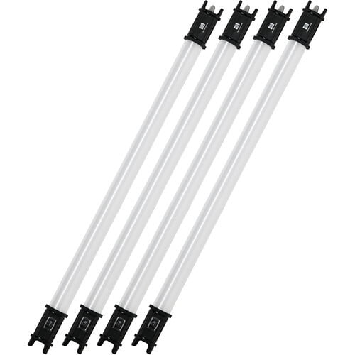 NanLite PavoTube 15C 2 ft RGBWW LED Tube with Internal Battery 4 Light Kit. An amazingly versatile lighting fixture featuring 0 to 100% dimming, a maximum output of 1400 lumens per tube (the 4 tubes in this kit produce 1216 Lux @ 1m 5600K combined), a CRI of 98 and a TLCI of 95, adjustable color temperature from 6500-2700K as well as a full spectrum RGB and pre-programmed special lighting effects.