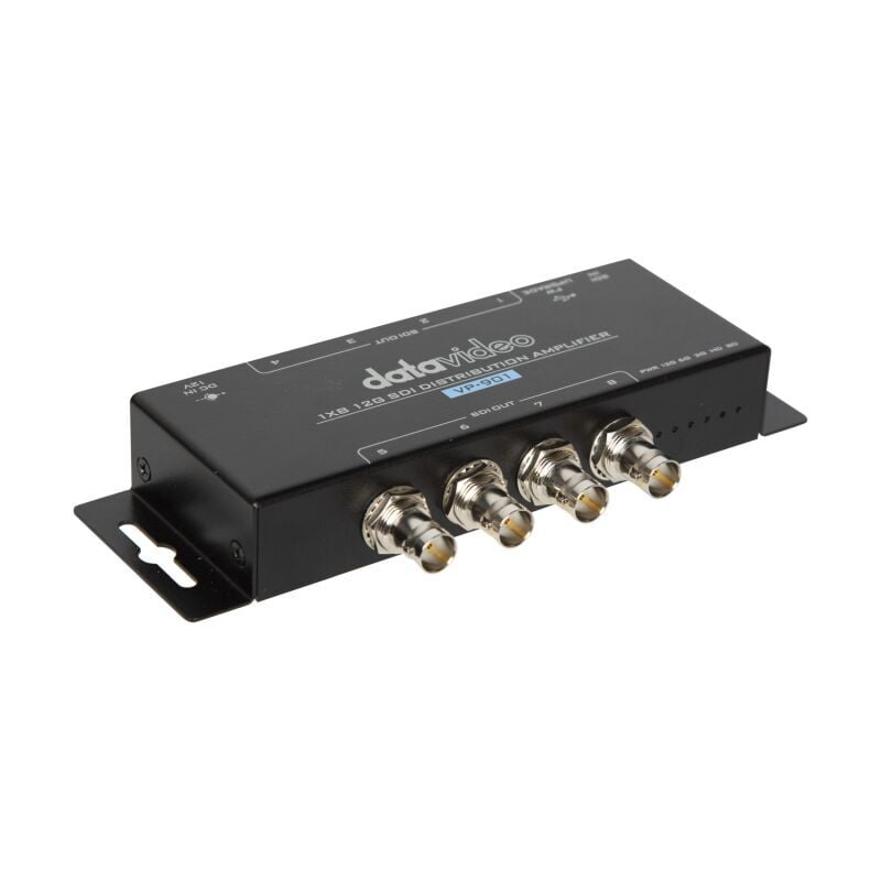 The VP-901 12G SDI Distribution Amplifier from Datavideo can distribute a single 12G, 4K, HD, or SD-SDI input into eight SDI outputs. It is a reliable video device, which splits an SDI, HD-SDI, 3G-SDI, 6G-SDI, or 12G-SDI video source to SDI compliant video displays simultaneously. It also supports re-clocking for a clean signal over long cable runs.