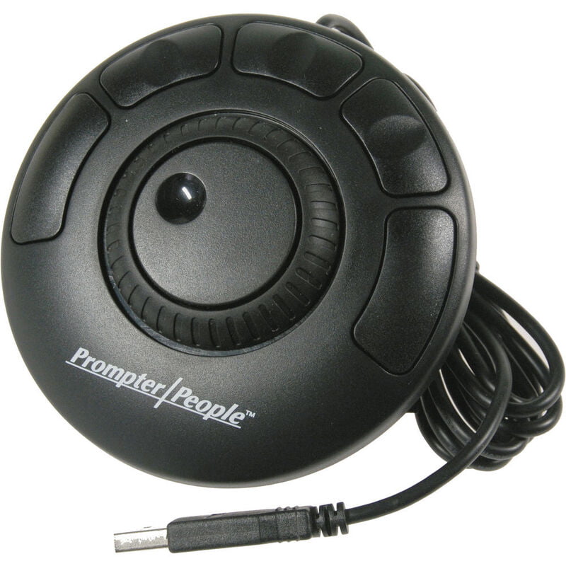 The Prompter People Wired Remote Controller is designed to be used with the Flip-Q software and any teleprompter from Prompter People. It is compatible with Windows and Mac, connecting to your computer via the built-in USB cable. It features five programmable control buttons and ships pre programmed. In the center of the controller is a jog/shuttle wheel for control over speed and direction.