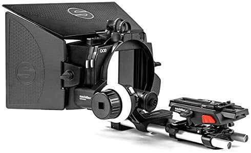 The Ace Matte Box features two filter stages, one fixed and the rear one rotating up to 90° left or right. Included are adjustable top and side flags, two 4 x 4" and two 4 x 5.65" filter frames, and two different-sized neoprene rings. The flags gently clip on and fix into desired positions when you tighten each one's lever.