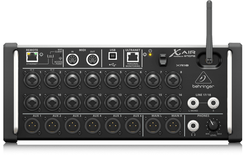 The XR18 is an 18-input, rackmountable stage box unit with 16 gain-programmable Midas-designed microphone preamps, two hi-Z inputs, Behringer’s renowned X32 effects rack, a 100-band Real Time Analyzer on all channel and bus EQs, an 18 x 18 USB interface, and integrated Wi-Fi, all in a convenient rackmount chassis. Just add mics, and you have everything you need to mix a live show and record pristine multitrack sessions straight to your DAW. The Behringer XR18 gives you a whole new way to mix.