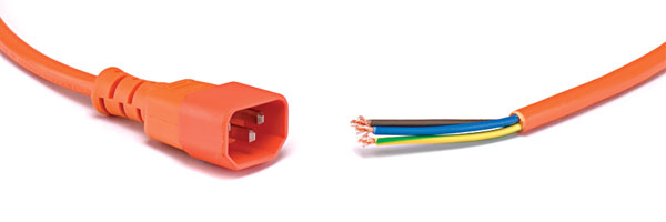 IEC 60320 C19 female AC mains power connectors terminated to IEC 60320 C20 male connectors or UK 13A 3-pin mains plugs.