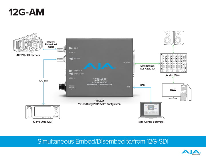 AJA 12G-AM 12G-SDI 8-Channel AES Audio Embedder/Disembedder with Fiber Options