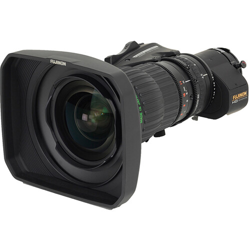 The Fujinon HA14X4.5BERD-S HD ENG/EPF Super Wide Angle Lens supports 2/3" format cameras and offers features such as Quickzoom and Zoom Limit. Inner focusing allows the lens to move the inner lens group without altering its length, thereby ensuring stability while focusing. With the cruise zoom feature, you can set the speed to ensure a constant zoom speed.