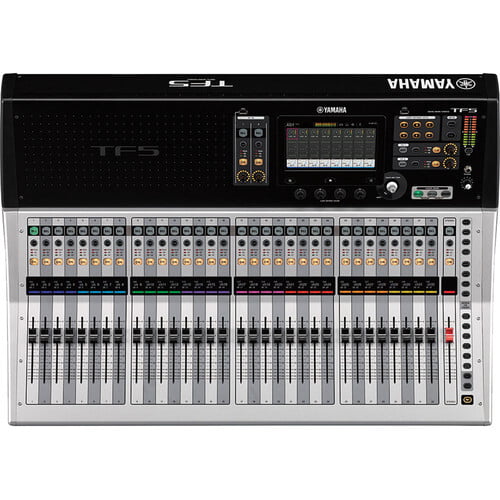 The Yamaha TF5 is a rack-mountable digital audio mixing console that features a touchscreen display, 33 motorized faders, and is expandable up to 48 input channels by adding the optional Tio1608-D I/O rack. Ideal for a multitude of live sound reinforcement scenarios, the TF5 can also be used for live recording, offering 34 x 34 channel digital recording and playback via USB 2.0 using a computer and your preferred DAW software, and 2 x 2 channel recording and playback using any USB storage device.
