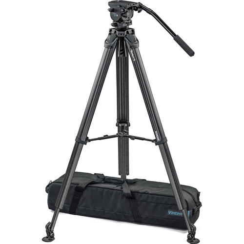 This Vinten System Vision blue3 with Flowtech 75 Carbon Fiber Tripod, Mid-Level Spreader, and Rubber Feet supports cameras and accessories weighing from 6.6 to 14.6 pounds, and is well suited for DSLRs, Mirrorless, and small to medium camcorders.