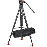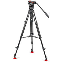 The Sachtler 0371A Tripod System with FSB 4 Fluid Head, Aluminum Legs, and Ground Spreader is a full tripod system for videographers who use cameras and accessories up to 8.8 pounds. The FSB 4 fluid head is suitable for larger DSLR and mirrorless MFT cameras, as well as smaller camcorders. It uses Sachtler's Sideload mechanism that offers the convenience of a touch-and-go system, with the balancing capability of a sliding baseplate. The fluid head features five steps of counterbalance plus 0, and three steps of pan and tilt drag adjustment, plus a zero drag option for pan and tilt.