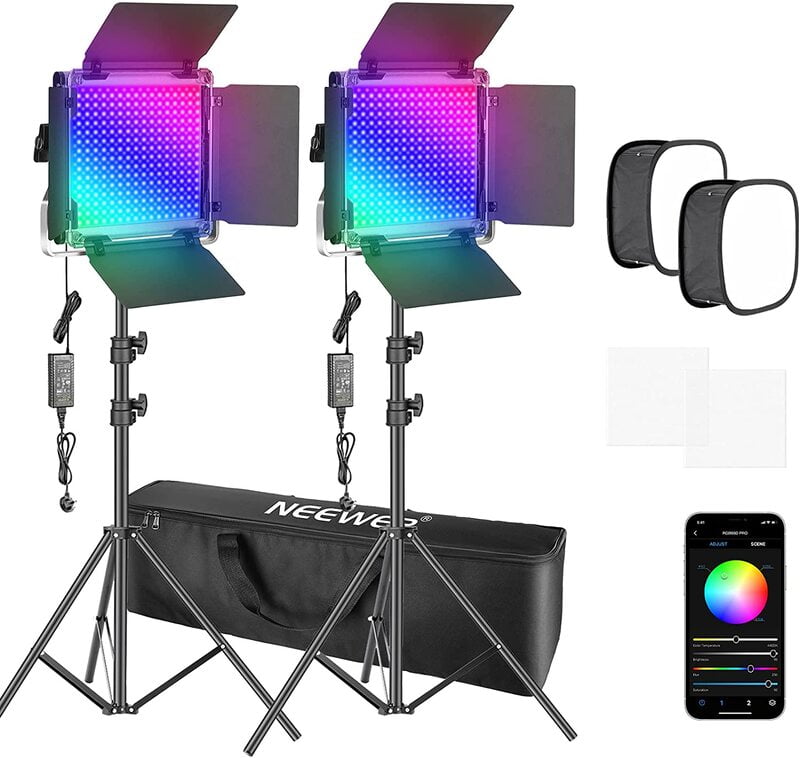 Neewer 2 Packs 660 PRO RGB Led Video Light with APP Control Softbox Kit,360°Full Color,50W Video Lighting CRI 97+ for Gaming,Streaming,Zoom,YouTube,Webex,Broadcasting,Web Conference,Photography