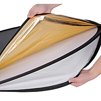 This 5-in-1 Collapsible Multi-Disc Light Reflector from Neewer measures 43" and is a versatile light-shaping tool for use either in the field or the studio. The translucent diffuser offers four sides with zippered covers for gold, silver, white, and black. Well-suited for portraits and medium still-life setups, the disc folds to approximately one third its open size, and comes with a carrying bag.
