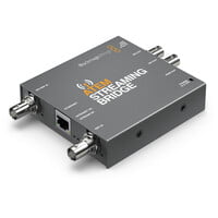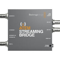 The Blackmagic Design ATEM Streaming Bridge for ATEM Mini Pro Streaming Switchers allows you to convert the IP signal from any ATEM Mini Pro unit into SDI and HDMI video. It features two SDI outputs and a single HDMI output and supports resolutions up to 1080p60.