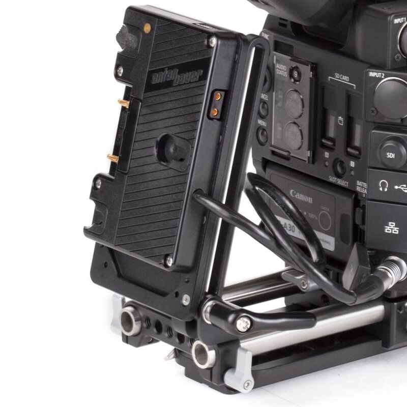 Power your Canon C300 Mark II, C200, or C200B camera or other gear using a Gold mount battery such as the Titon or Titon Micro with this Gold Mount Battery Bracket with P-Tap and Canon 4-Pin LEMO-Type Output from Anton Bauer.