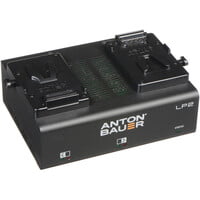 The Anton Bauer LP2 Dual V-Mount Battery Charger is a compact form factor simultaneous charger. When multiple batteries are being charged simultaneously, the LP2 detects which battery has the strongest charge and prioritizes it.