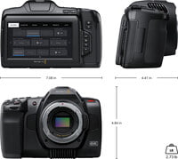 The Blackmagic Pocket Cinema Camera 6K Pro is an advanced technology, handheld 6K digital film camera with 6144 x 3456 Super 35 high resolution HDR sensor, dual native ISO, EF lens mount and direct recording to USB‑C disks!