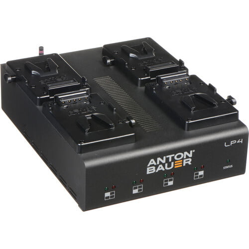This four-bay, software-controlled simultaneous V-mount battery charger is aimed at rental facilities, ENG/EFP/OB vehicles, broadcast equipment depots, or situations that require many batteries to be on charge and ready to go.