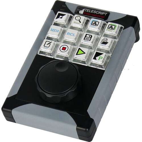 The customized XK-12 offers users an integrated jog and shuttle ring for scrolling, twelve backlit pre-programmed keys that perform bookmark, runlist, memory/recall, zoom, full-screen prompt and edit mode commands in Telescript AV and PRO software.