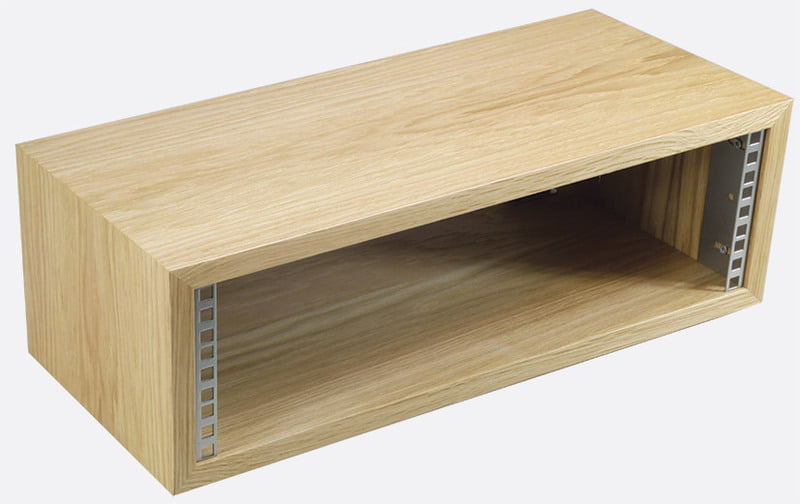 For use in home, educational, corporate and commercial environments, where visual appearance is important. These wall-mounting 19-inch racks are constructed from high-density particle board, finished with ash, oak, beech, walnut and white veneer, with mitred joints for an aesthetic finish. Available in eight heights and two depths, they are open at the front and rear, with 19-inch mounting facilities at the front.