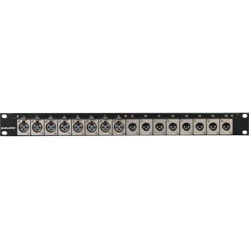 The 161U-X12F AV Bulkhead Panel from Canare offers the ability to bridge eight XLRF and eight XLRM to solder connectors. This unit features a footprint of 1 RU and can be mounted in a standard 19" equipment rack. This solution is well suited for use in recording studios, multimedia edit suites, master control rooms, and telecom installations, among other possible applications and settings.