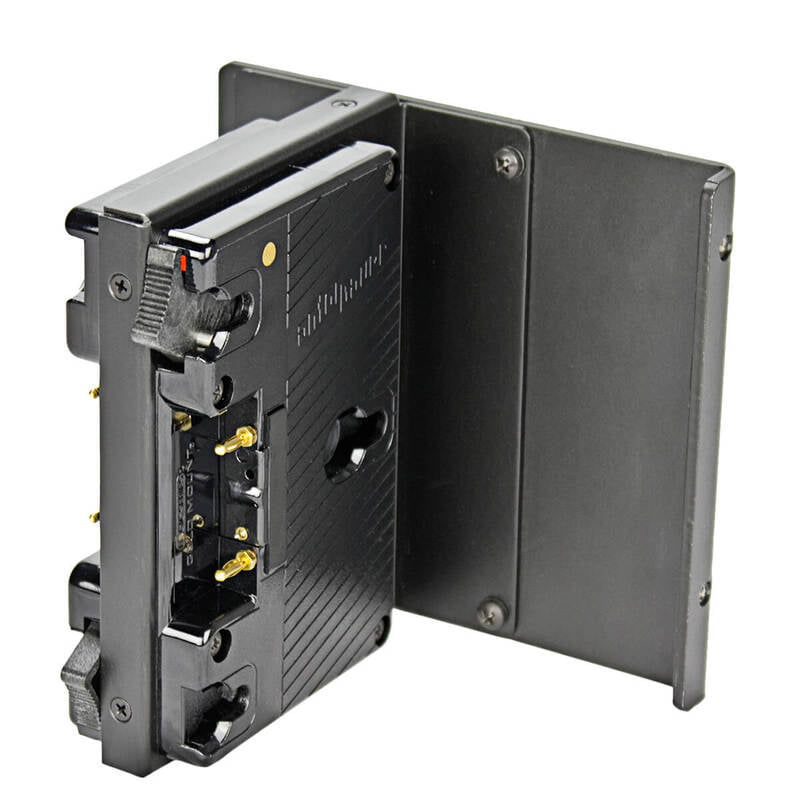 This adapter plate can be attached to any portable device with an existing Gold mount bracket. The "hot swap" design enables the QR-HSGM to mount two batteries simultaneously. This plate is sized to accommodate DIONIC 90/HC/HCX or HyTRON batteries only.
