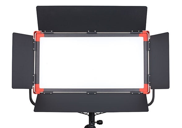Swit S-2430C Bi-Color Studio Panel LED Light is a low-profile fixture with a thin 3.26" metal design and a 70-degree beam angle for wide coverage that can be contoured and controlled by the included 4-way barndoors.