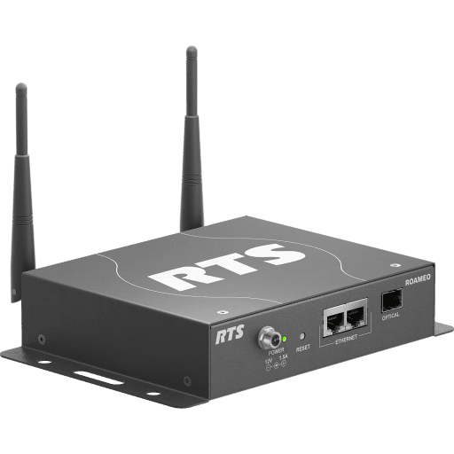 The RTS AP-1800 ROAMEO wireless intercom system is a professional, easy-to-use and future-proof solution based on the license-free DECT standard which operates in a protected frequency band. ROAMEO provides high-quality audio and seamless matrix integration to a large number of simultaneous users across a wide area. State-of-the-art technology guarantees optimized sound performance. Featuring a modern, rugged design, ROAMEO is suitable for a wide range of professional intercom applications where wireless communication is critical, including broadcast production studios, theater and sport event productions, houses of worship, commercial buildings and outside broadcast (OB) trucks. The system consists of the TR-1800 beltpack, the AP-1800 access point and optional accessories including charger, holster and pole-mount kit.