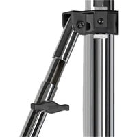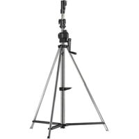 The Kupo 3-Section Wind-Up Stand with Auto Self-Lock is the perfect combination of strength and safety. The crank handle raises a maximum load of 66 lb to a height of 12.5' in 1.73" increments per single clockwise revolution and self-locks for safety. The stand is large enough to support a skidproof step that allows access to its upper section, while the universal head offers three mounting options. The steel wind-up stand features a leveling leg for uneven terrain and a 2-riser, 3-section design.